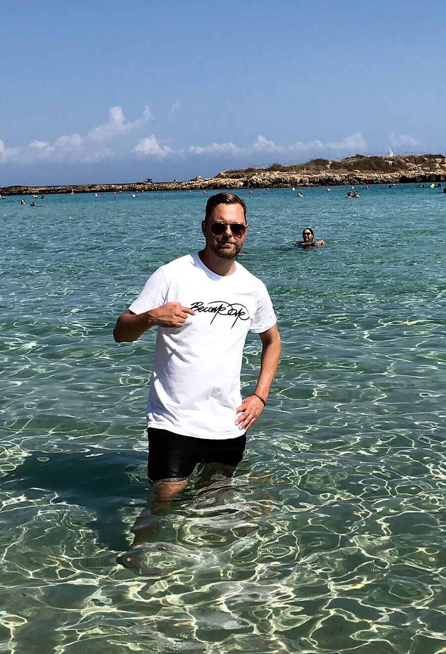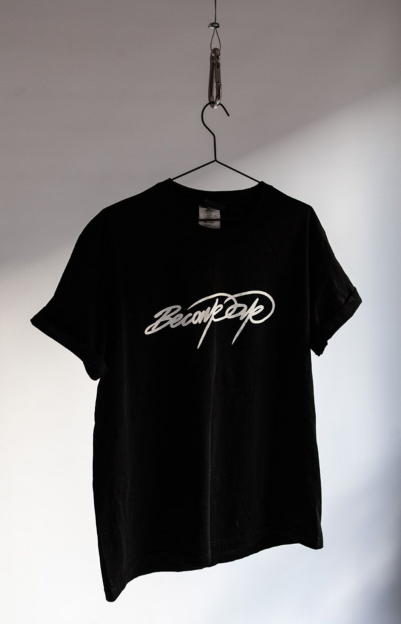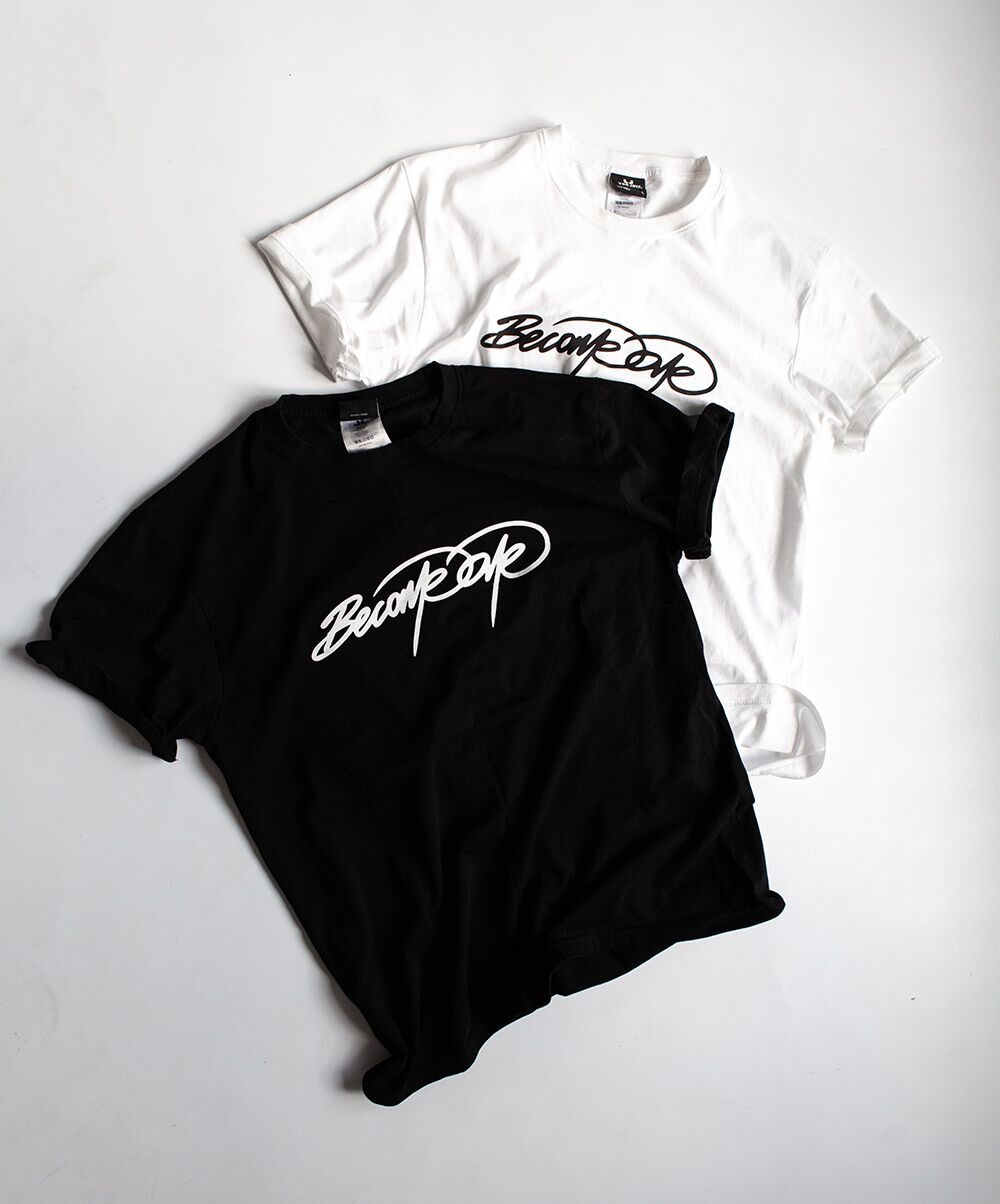 En enkel, rå og stilren T-shirt med BecomeOne’s originale signatur.