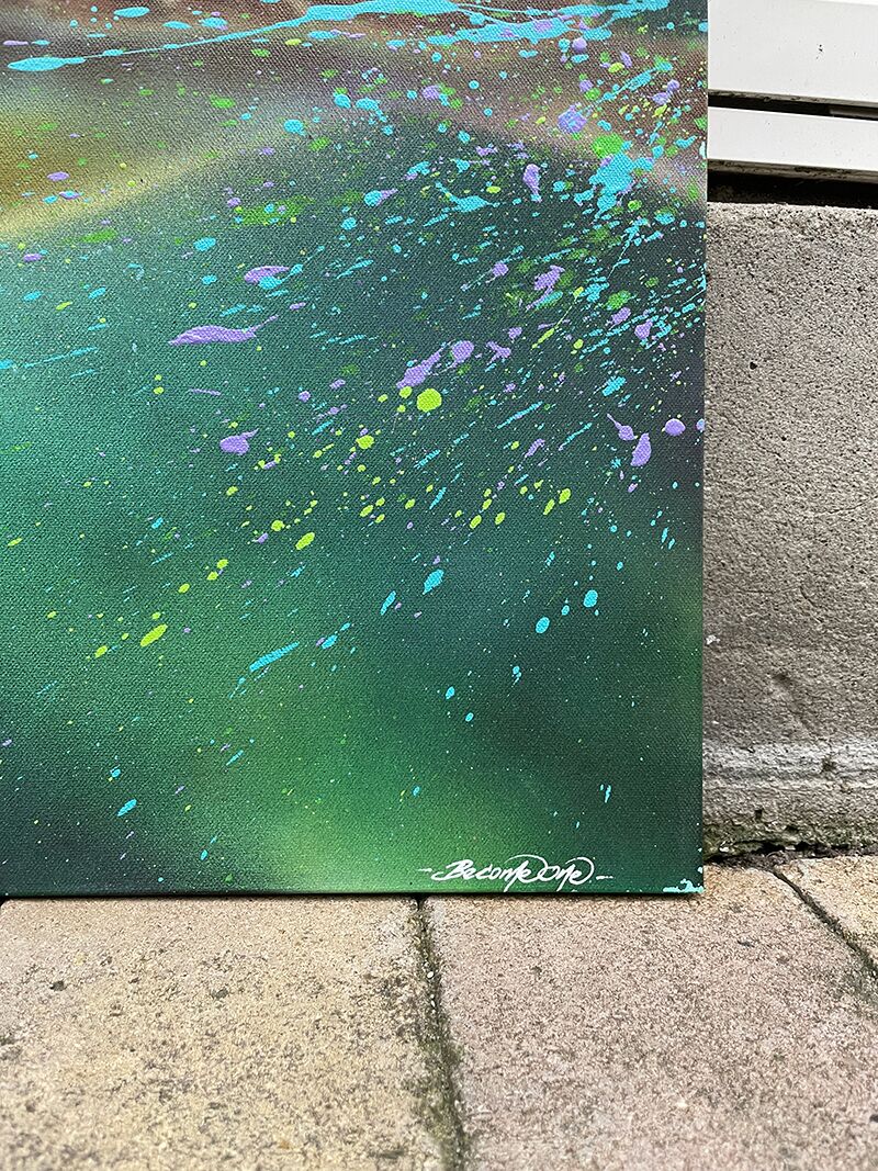 Dette maleri er et ud af to sammenhængende værker med undervandstema. Maleriet er malet med en kombination af spray og airbrush, og måler 100 x 80 cm.